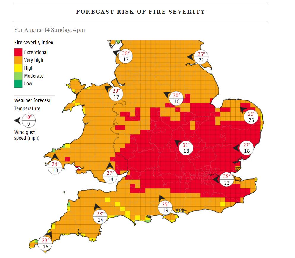 不过,尽管相关部门已经发布了火灾风险预警,但本周四在伦敦、Cornwall、CountyTyrone和Tyneside等地区,仍然爆发了多起火灾。