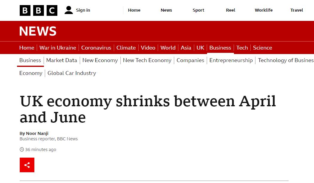 英国国家统计局(ONS)的最新数据显示,英国经济在4月至6月期间出现了小幅收缩,二季度GDP下滑了0.1%,远低于经济学家的预期。