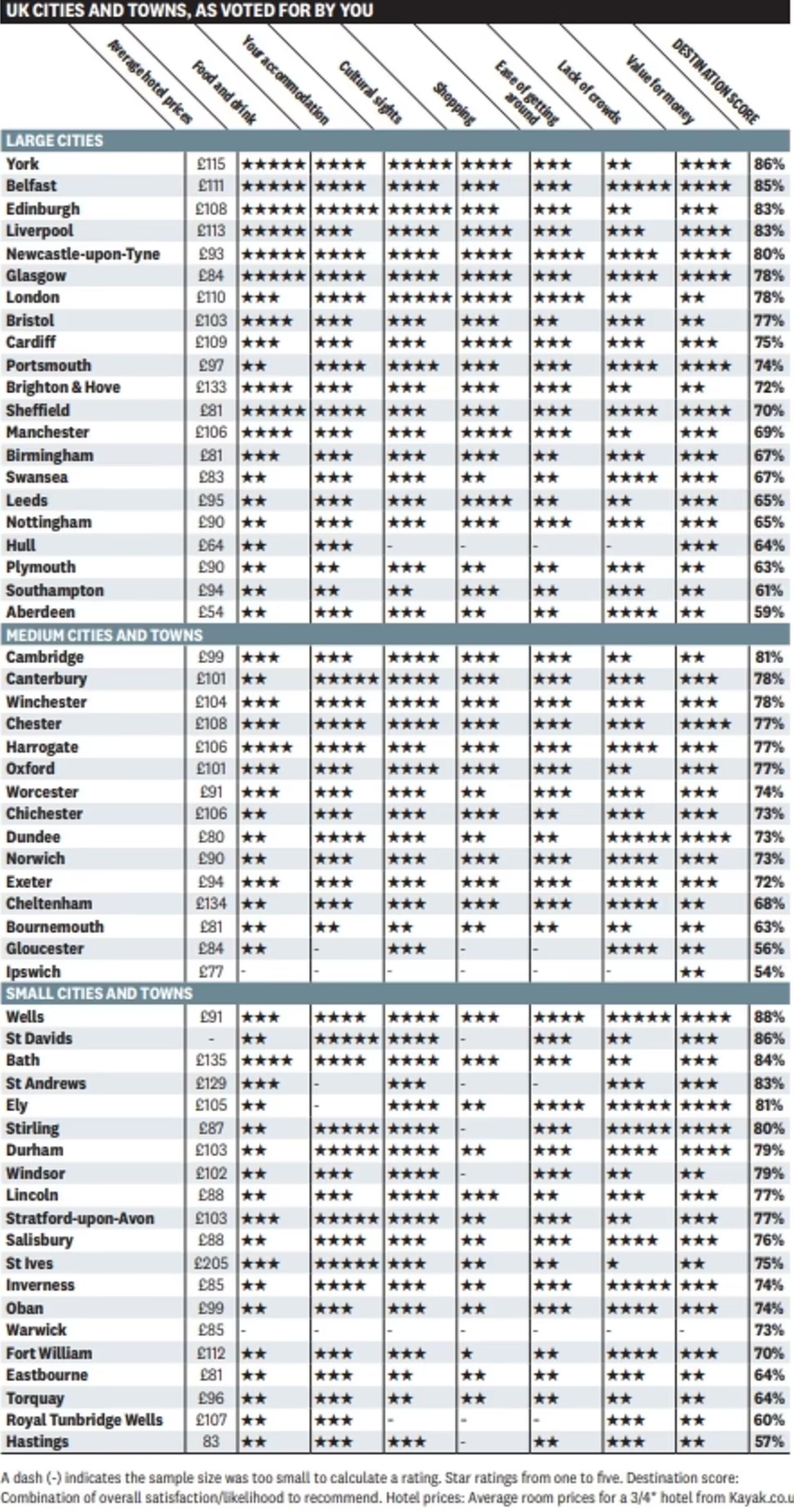 就在近日,Which?公司对英国最适合宅度假的城市进行了调查,要求受访者对56个城镇在八个类别方面的表现进行评分,这些类别包括酒店价格、餐饮、住宿、文化景点、购物、出行便利、人流和性价比。