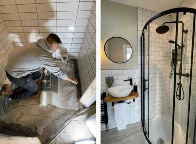 为了减少成本,大部分装修工作都是James自己完成的,无论是刷墙壁,铺地板这样的基础性工作,还是切割木板,做防水这样的高难度任务,他几乎都不在话下。
