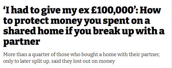 Zoopla此前进行的一项调查显示,在那些曾与伴侣一起买房但后来分手的人中,超过四分之一(27%)的人表示,他们有所损失,因为出售收益没有被公平分配。