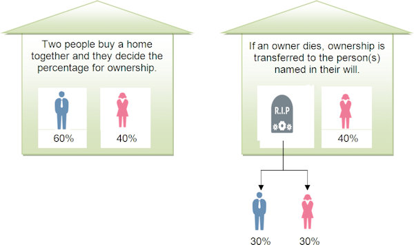 在上文提到的“联合承租人(JOINT TENANTS)协议”下,每个人都占有相同份额的产权。