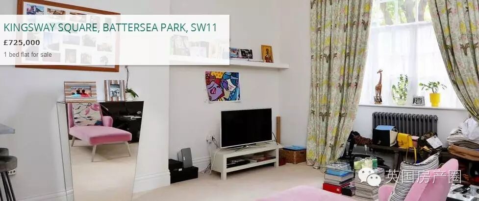 再比如这套靠近Battersea 公园的一室一厅,要价72万5千英镑……