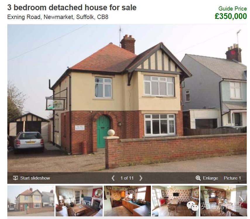 而不远处(距离15英里以内)的Newmarket小镇,差不多条件(甚至略差)的三居室独栋房产售价起码在35万镑以上。