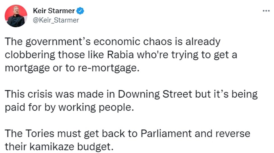 工党党魁Sir Keir Starmer也在社交媒体上声援Rabia,认为现在的经济混乱打击了像Rabia这样努力获得贷款买房的群体。这场危机是唐宁街导致的,但是却让民众买单。
