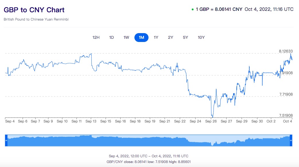 兑换人民币汇率达到1 GBP = 8.06141 CNY