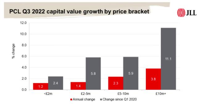 JLL的最新数据显示,伦敦市中心黄金地段(PCL)的房价和租金继续攀升,在当前经济环境下依旧保持稳定。