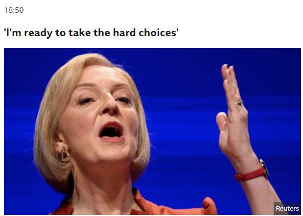 最后,特拉斯还补充称,她已经准备好“做出艰难的选择”,“我们必须坚持到底”。