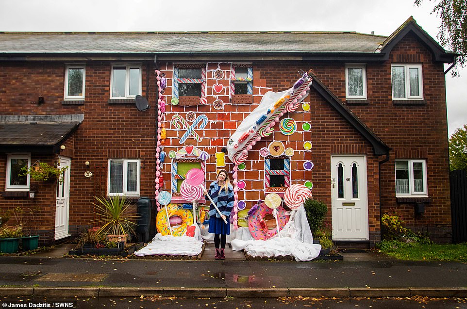 眼下,圣诞节将至,今年34岁的Carmen Croxall突发奇想,将自己在埃克塞特的家,装饰成了姜饼屋。
