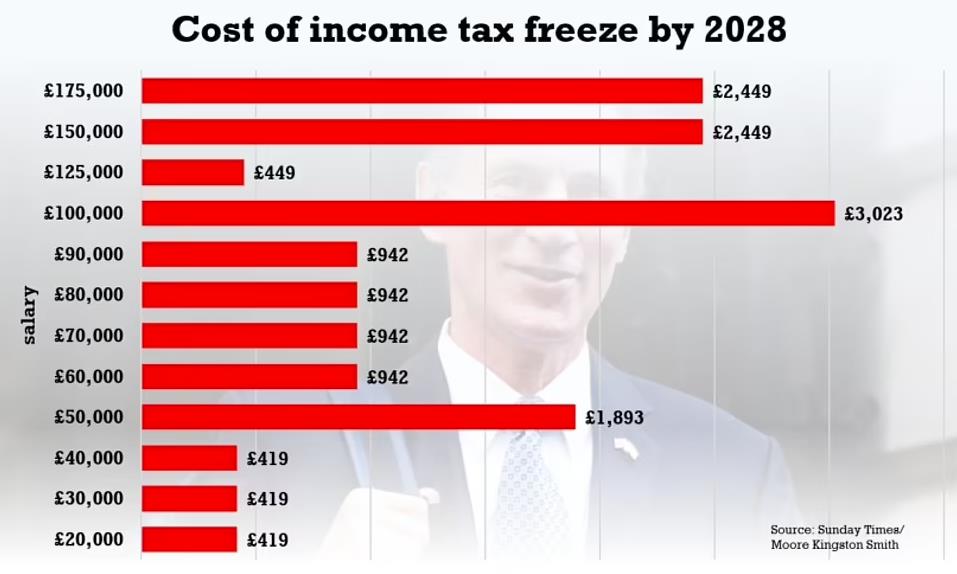 媒体称,为筹集税收,亨特计划冻结部分税收的起征点(人们开始缴纳更多税款的收入水平),一直冻结到2028年。其中,预计包含对所得税的调整,据悉,45%的最高所得税率的起征点将从150,000英镑降至125,000英镑。