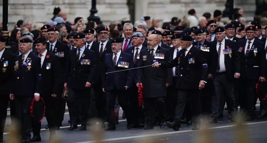 当默哀开始时,大本钟敲响了11次,有很多退伍军人在一旁观看。