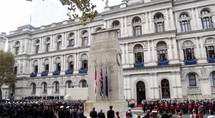 昨天中午11点,英国举国默哀两分钟,全国各地的战争纪念馆也举行了类似的仪式。