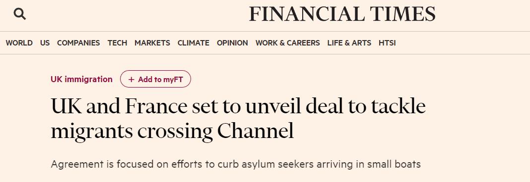 - 英法公布了一项具有“里程碑意义”的协议,英国向法国每年支付6,300万英镑,以遏制非法移民穿越英吉利海峡来到英国…