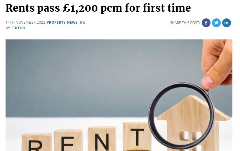 - Hamptons的最新数据显示,英国的平均租金首次飙升至每月1,200 英镑以上,这是有记录以来的首次,普通家庭现在需要将44%的税后收入用于租金。伦敦租赁市场竞争非常激烈,平均22人争夺一套房…
