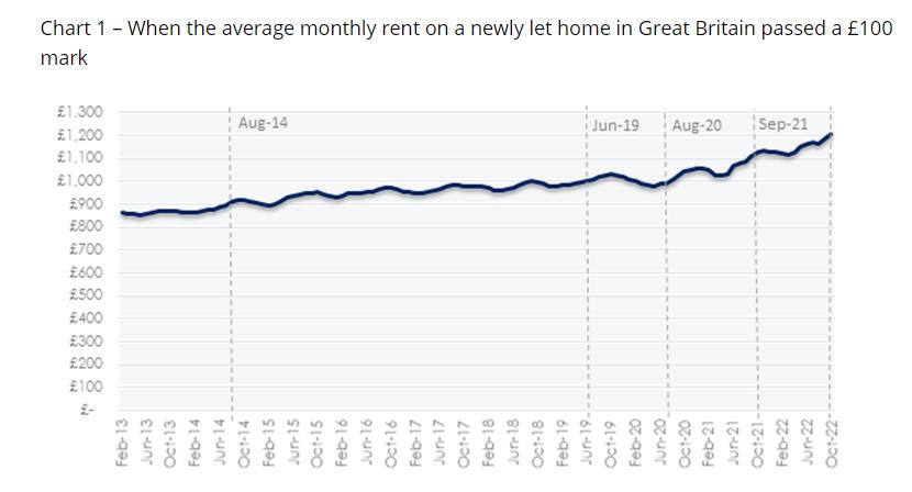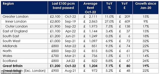 Hamptons的最新数据显示,英国的平均租金首次飙升至每月1,200 英镑以上,这是有记录以来的首次。