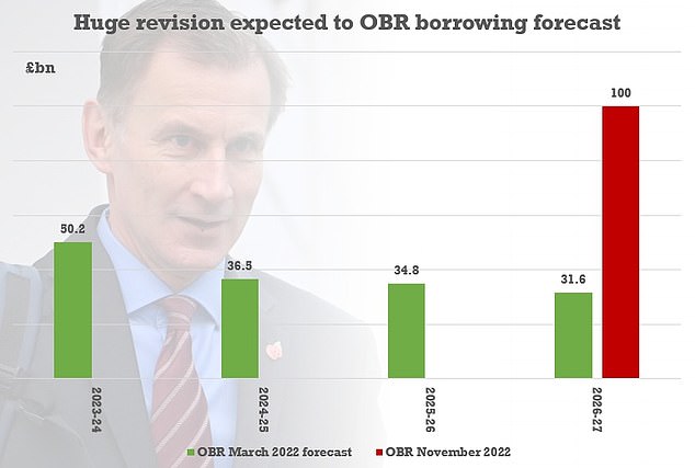 在OBR监管机构预测英国的财政赤字在2026年将预期高出 700 亿英镑之后,预计Hunt将会大规模增税,削减开支。