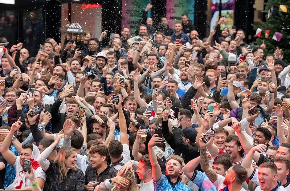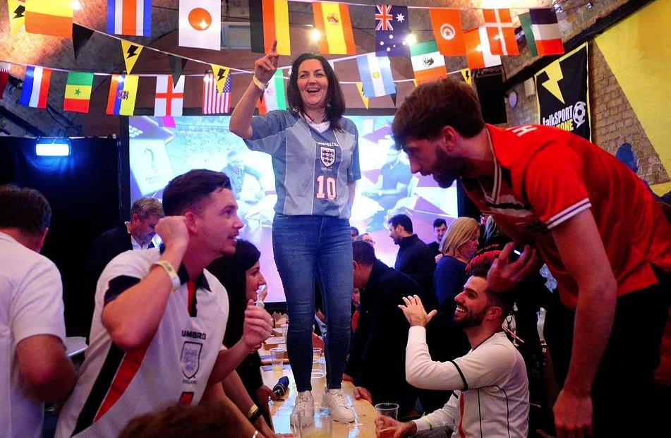 英国各地的酒吧也挤满了前来观看球赛的人,而随着比赛结果的揭晓,整个英国沸腾了,球迷们举杯畅饮,送上最深的祝福。