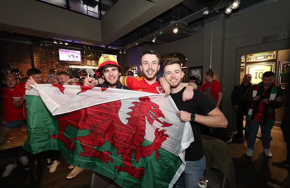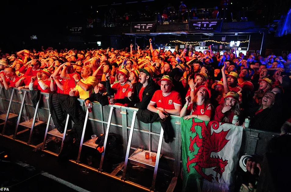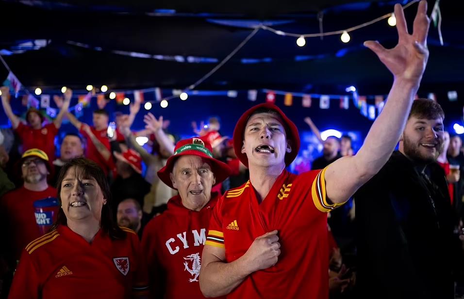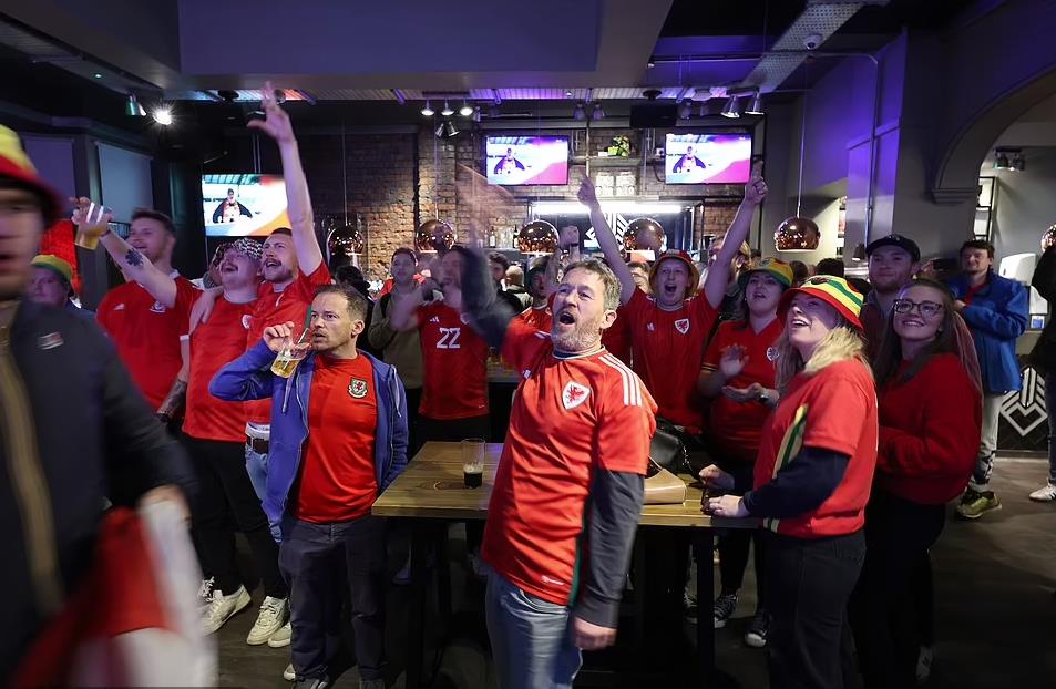 在比赛期间,很多威尔士球迷也聚焦在威尔士加迪夫等地的酒吧观看比赛,为球队摇旗呐喊。