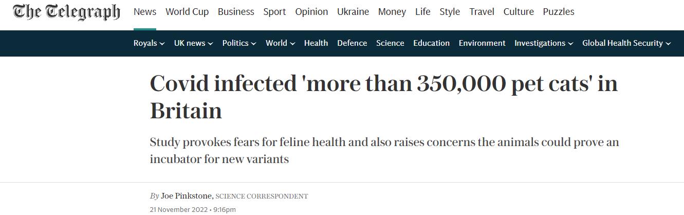 - 最新研究表明,在新冠疫情期间,英国有超过35万只宠物猫感染了新冠病毒…