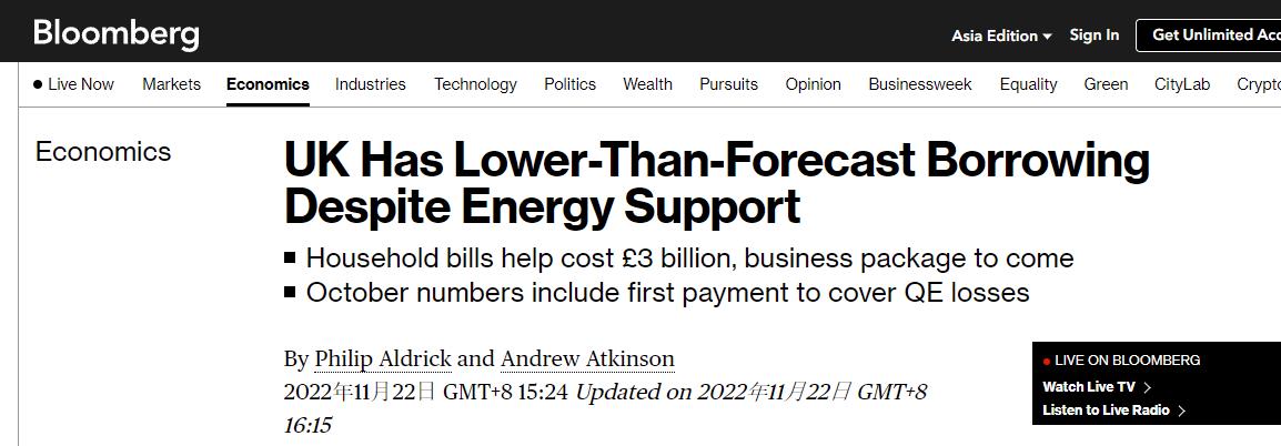 此外,在截至2022年10月的财政年度,英国前六个月的借款额被下调16亿英镑,达到844亿英镑。这比去年同期减少了217亿英镑。