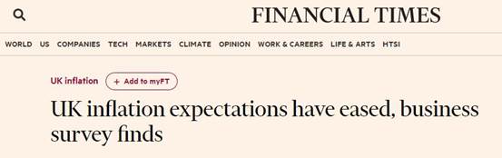 根据英国央行的最新数据,英国通胀预期或有所放缓,企业预计他们的销售价格将以俄乌危机以来的最低速度上涨。