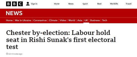 媒体称,这也意味着新任首相苏纳克在上任后的第一次选举考验中失败了。