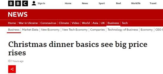 - 最新研究发现,今年圣诞大餐的价格将比2021年高出近22%…