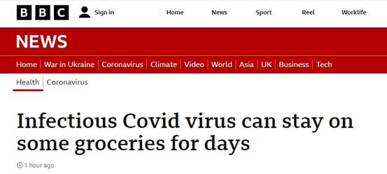 英国专家证实,新冠病毒可以在一些即食食品上存活数天。