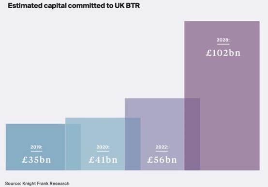Knight Frank的数据显示,机构投资者正在涌入英国的建筑租赁(Build-to-Rent)行业,引发了该行业的高速发展,预计到2028年,英国的建筑租赁行业将增长82%。