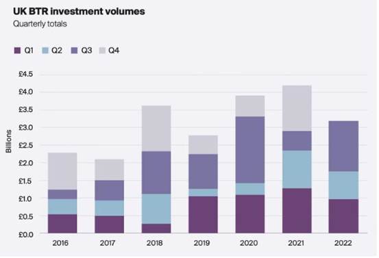 Knight Frank表示,建筑租赁行业的发展受益于强劲的需求和出租房屋的结构性供应短缺。由于经济动荡时期租赁市场的低波动性和强大的弹性,该行业仍然具有吸引力,投资者并未被目前的通胀飙升和利率上升所吓倒。