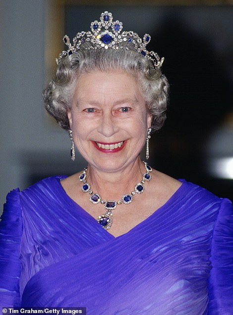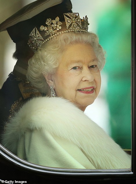 佩戴了英女王伊丽莎白二世母亲的王冠,和女王伊丽莎白二世的耳环。