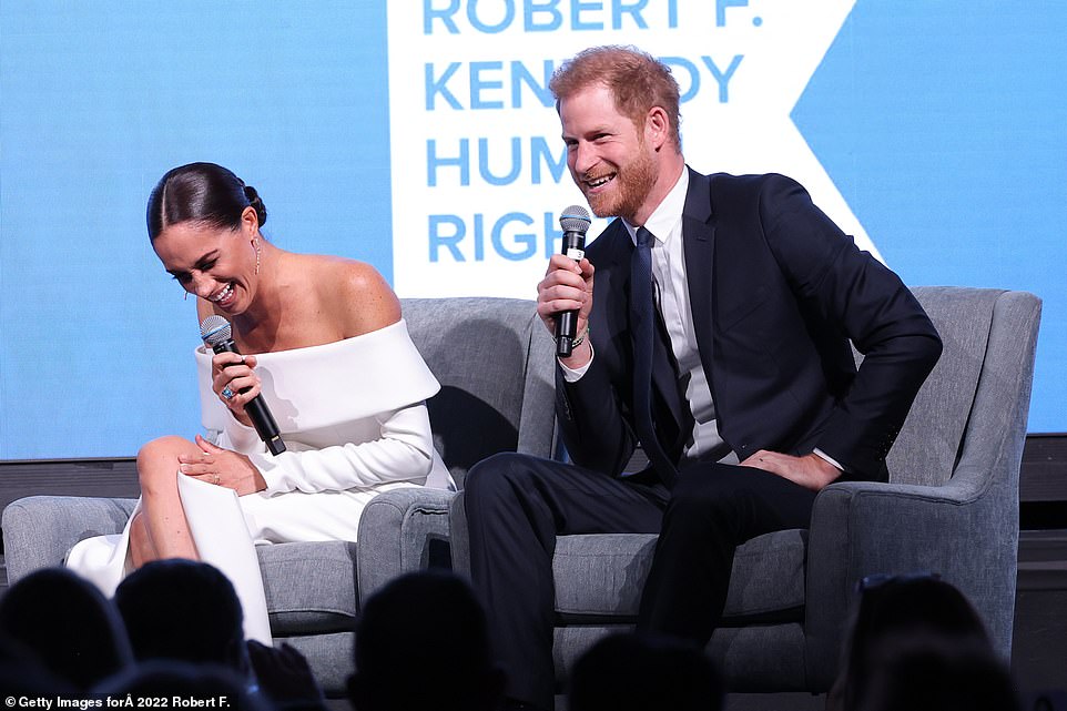 在这个盛大的颁奖典礼上,夫妻俩获得了罗伯特·肯尼迪人权基金会颁发的反对皇室种族主义奖,梅根谈到了她作为王室成员时曾因为受到精神折磨想要自杀的念头,并表示最终没有自杀而选择活了下来并不容易。