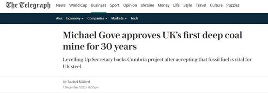 本周三,英国升级大臣迈克尔·戈夫 (Michael Gove) 批准了英国30多年来的第一个深煤矿。