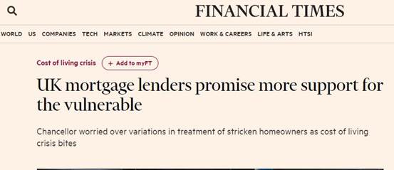 - 英国的抵押贷款机构已做出承诺,将为受生活成本危机影响的弱势房主提供更多的支持,减轻他们的还贷压力…
