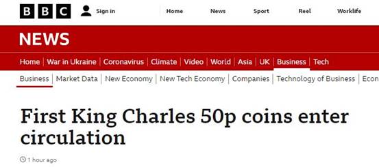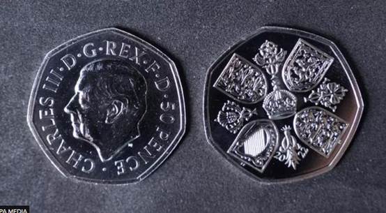 - 英国首批印有查尔斯国王肖像的50便士硬币进入流通,这标志着英国硬币进入了一个新时代…