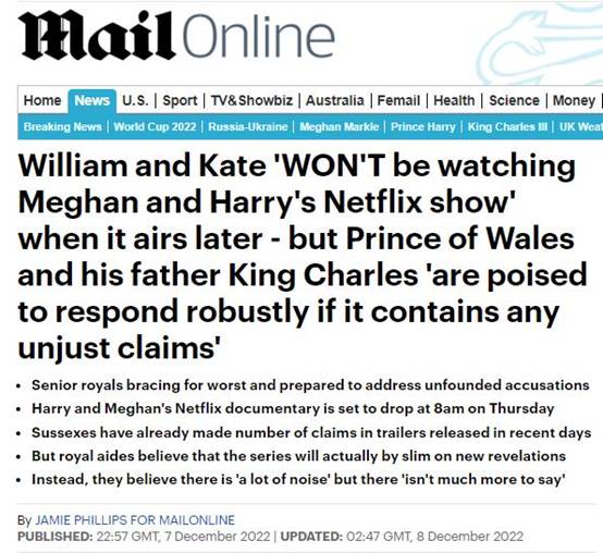 另一方面,在这部纪录片的预告片发布之际,就有很多人发现,预告片中使用的很多有争议的镜头实际上与哈里梅根无关。