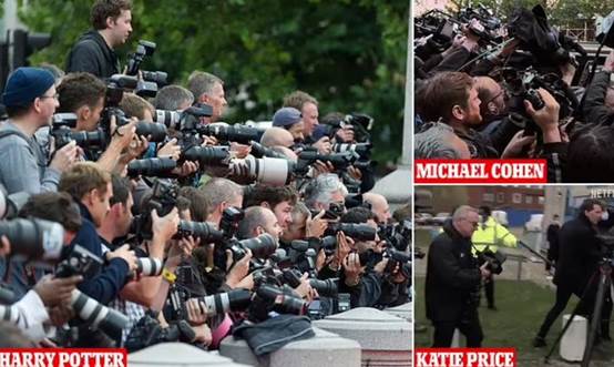 比如,其中一张似乎表达哈里梅根被媒体围追堵截的照片,实际上是媒体在参加《哈利·波特》的首映式。