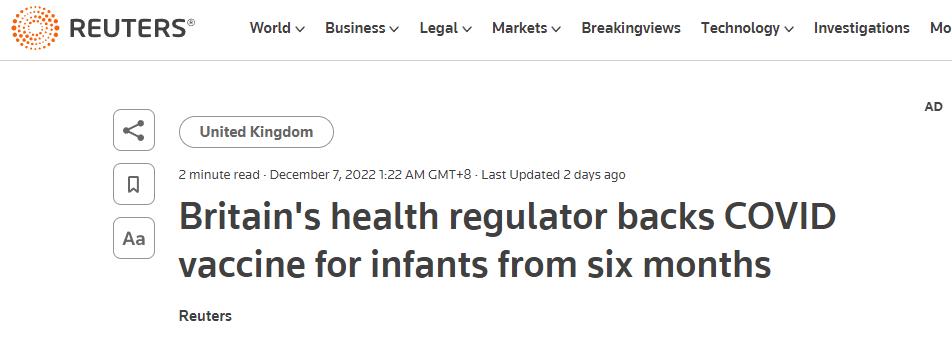 目前,英国不是全球唯一支持为低龄婴儿接种新冠疫苗的国家。今年早些时候,美国推出了针对同一年龄段人群的辉瑞-BioNTech疫苗。几个月前,欧盟监管机构还批准了由Pfizer-BioNTech和Moderna生产的针对五岁以下儿童的新冠疫苗。