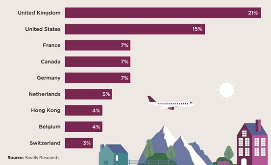 调查发现,目前在市场上买房的富豪中,有43%的人是国际买家,57%的是本土买家。