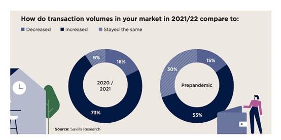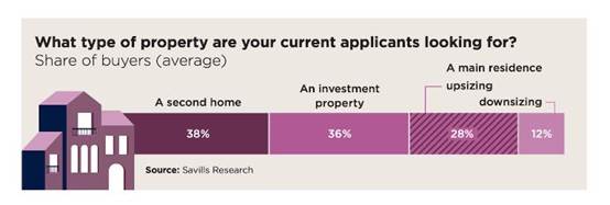 Savills发现,超过40%的受访中介表示,与疫情前相比,市场上有更多的买家在寻找投资房产或第二套住房。