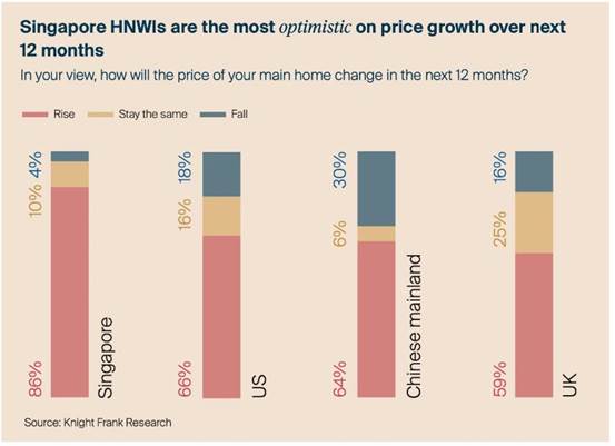 实际上,不仅是Savills一家机构,Knight Frank最新的调查也发现,大部分富裕人士对房地产市场的走势持乐观态度。