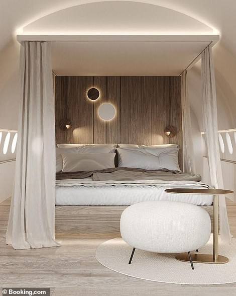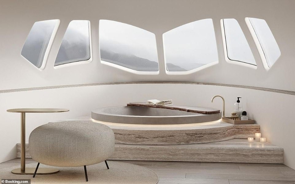 走进这座飞机,在原来飞机头的位置,有一个时尚的石制浴缸,就在驾驶舱窗户的下方。采光极佳,有一种置身科幻电影的感觉。