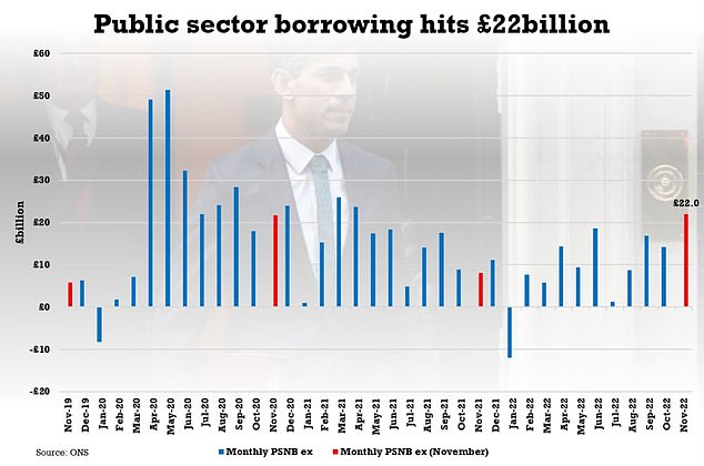 由于利率飙升和家庭能源支出补贴,英国政府每月借款达到 220 亿英镑,创下11月有史以来的最高纪录。这个数字远高于经济学家的预测,比去年同期高出139 亿英镑。