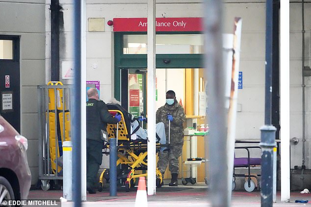 为了填补罢工导致的工作人员短缺,英国的部队士兵加入了援助,协助医院将危重症病人送入医院。