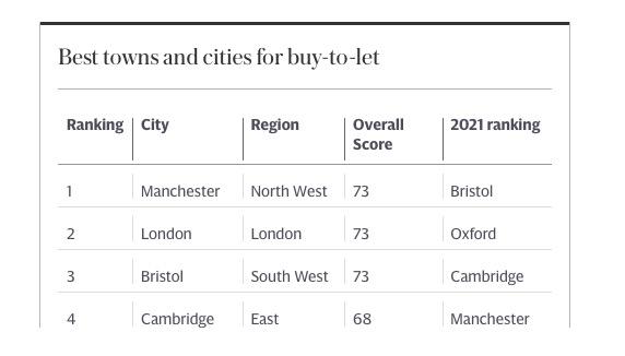 - 奥尔德莫尔银行(Aldermore bank)的最新报告显示:曼彻斯特被评为购房出租房地产投资的最佳城市。