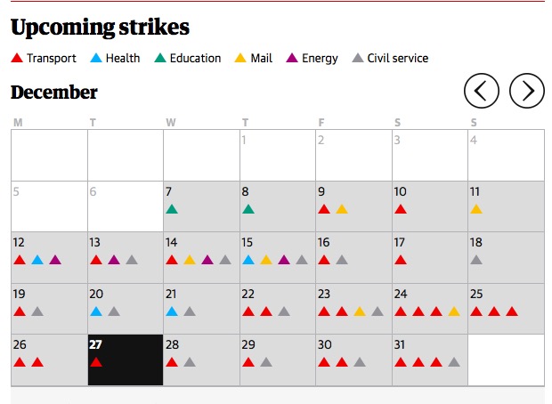 CrossCountry的TSSA工会成员在节礼日晚上9点开始了24小时的罢工,这是一场长期运动的一部分,目的是保证没有强制裁员,没有未经同意的条款变化,以及增加工资以解决不断上涨的生活成本。大西部铁路公司和西米德兰兹铁路公司的TSSA成员将分别从周三中午到周四中午罢工。
