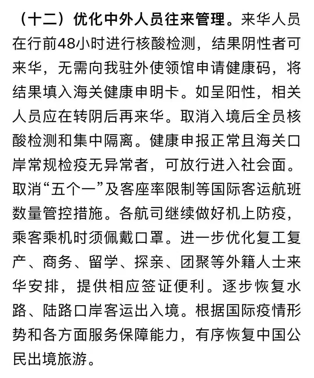 在26日,国务院联防联控机制发布《关于对新型冠状病毒感染实施“乙类乙管”的总体方案》后,27日,中国移民局也发布公告称,为适应疫情防控新阶段新形势新要求,将优化移民管理政策措施。