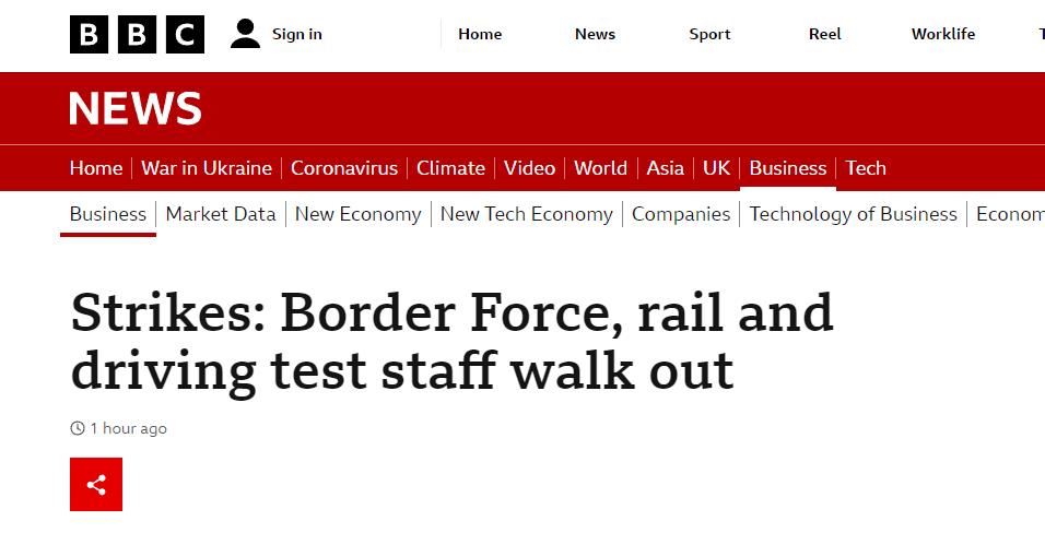 - 英国机场的边防部队工作人员将在新年前夕开始进行罢工,同时,铁路工人和驾驶考官也将举行罢工…
