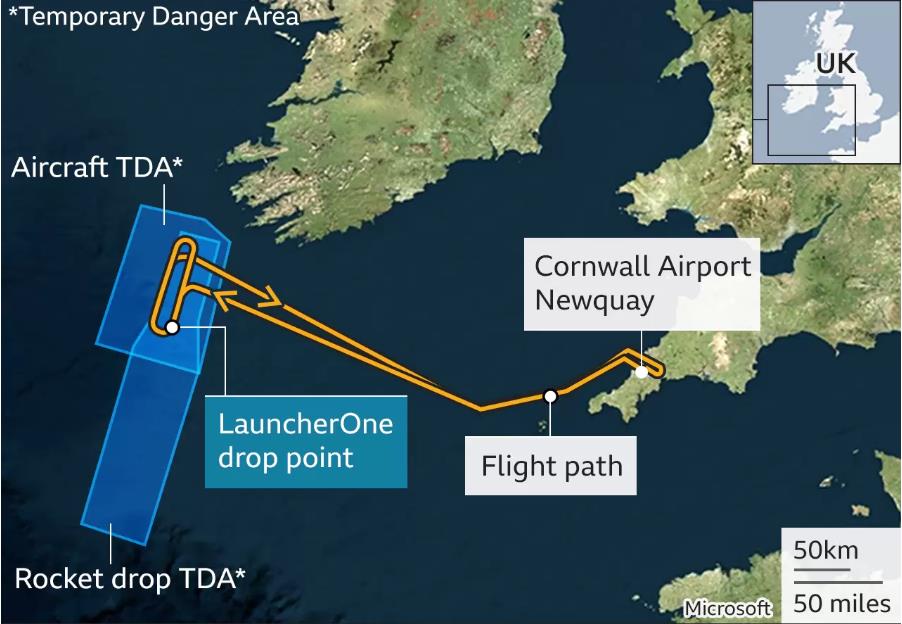 - 本周一,英国将在本土进行首次轨道太空发射任务,一架由康沃尔起飞的飞机将在大西洋上空发射火箭,将9颗卫星送入太空…