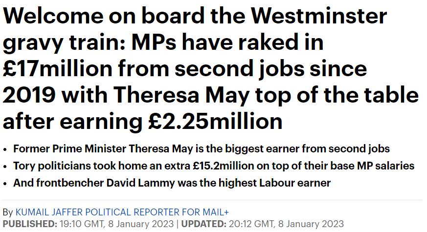 - 数据显示,英国议会议员们兼职赚取了超过1,700万英镑的收入,其中,保守党议员获得的兼职收入最多,前任首相特蕾莎梅是获取兼职收入最多的议员…